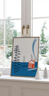 Tichý zimní večer na břehu jezera: Červený srub s kouřícím komínem je orámován tmavými borovicemi, které se dokonale odrážejí v ledové vodě. Jednoduché geometrické tvary a chladné modré odstíny vytvářejí moderní, minimalistickou atmosféru, která vyzařuje klid, teplo a odloučenou pohodu. Klidný poutač.