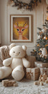 Sladký a dobrodružný portrét soba s třpytivým světelným řetězem na paroží a teplým zlatým pozadím. Jemná ilustrace a přátelský úsměv činí motiv útulným a hravým. Ideální pro vánoční výzdobu v domácnostech, které chtějí na zdi trochu zimního kouzla.