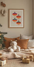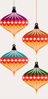 Barevné a hravé vánoční umění s geometrickými vánočními koulemi ve výrazných barvách. S abstraktními tvary a slavnostními vzory přináší design radost a moderní styl do sezónní nástěnné dekorace, ideální pro vánoční oslavy.