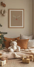 Minimalistický vánoční plakát Kristiny N. – SoulArt Shop: elegantní sob v jemných béžových odstínech, s výraznými parohy a teplým, červeným nosem, který připomíná Rudolfa. Klidná zimní atmosféra a jednoduchá grafická kompozice dělají z motivu stylovou volbu pro pohodlí sezóny. Perfektní pro vánoční pohodu v obývacím pokoji a vstupní hale.
