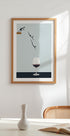 Vtipný a minimalistický umělecký tisk, který ukazuje dokonalý ponor – přímo do sklenice červeného vína. Svým hravým pojetím a čistou kompozicí se tento kousek perfektně hodí do kuchyní, jídelen nebo jakéhokoli prostoru, který zahrnuje humor s nádechem sofistikovanosti. Zábavný začátek konverzace pro milovníky vína a designové nadšence.