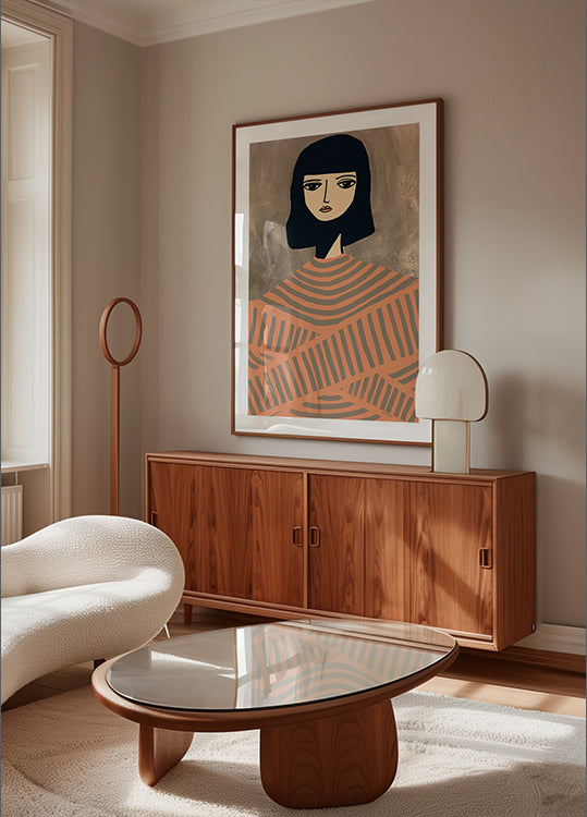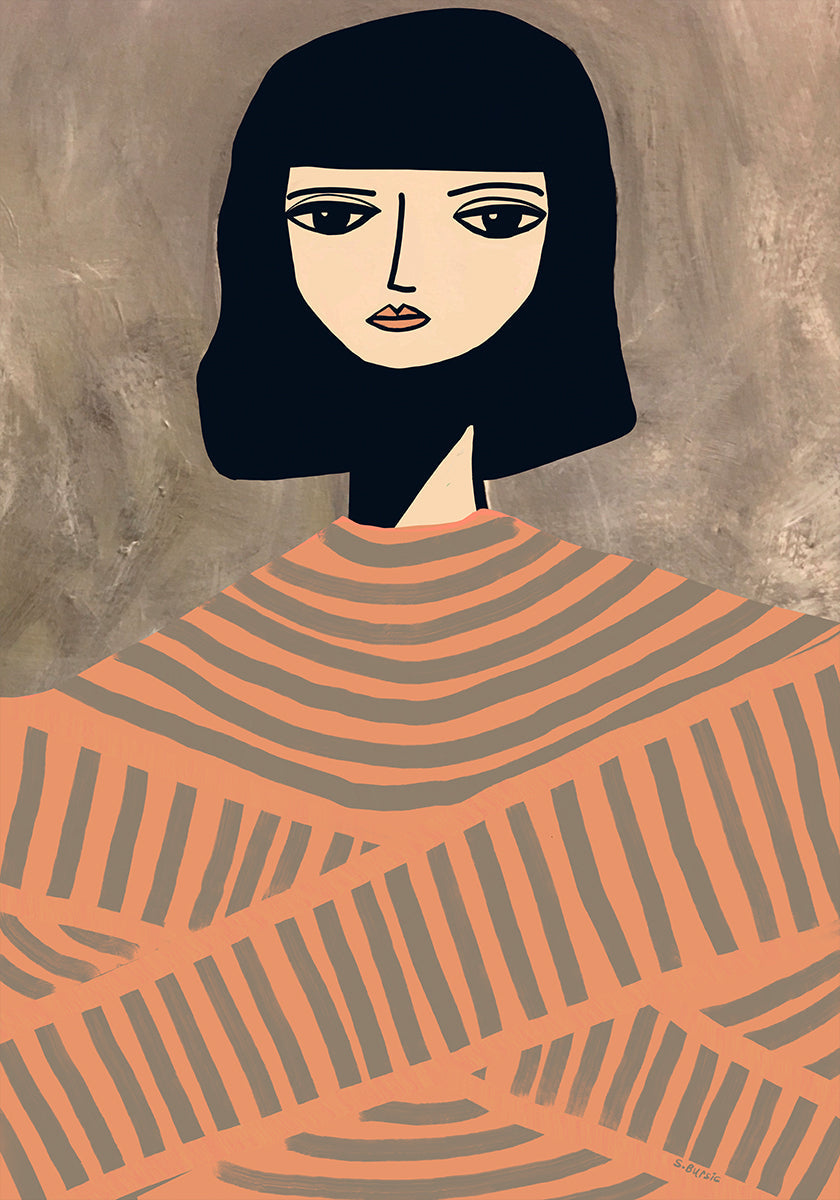 Velké objetí Sharyn Bursic zachycuje rozmarnou zimní náladu: dívka v pruhovaném svetru se drží v teplém objetí, když kolem ní sedá mráz a sníh. Poetický, figurativní portrét s jemnými, malířskými tahy a grafickou jednoduchostí, která vyvažuje chlad a blízkost. Ideální pro vnesení zimní poezie a tepla do domova.