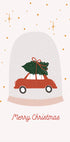 Vstupte do sváteční nostalgie s touto ilustrací Menina Lisboa: retro červené auto s bujným vánočním stromkem křižuje zasněženou venkovskou uličkou k útulnému statku, to vše zasazené do sněhové koule. Veselé nápisy Merry Christmas a vintage odstíny přinášejí teplé sváteční kouzlo. Jemné růžové nebe a stále zelené akcenty září útulnou zimní náladou.
