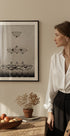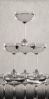 Šampaňská věž č.9 je stylový černobílý plakát, kde se v dokonalé symetrii tyčí sochařská věž na šampaňské. Bublinky se třpytí a světlo hraje v křivkách brýlí, takže odlesky vytvářejí hloubku a drama. Elegantní upoutávka inspirovaná vintage stylem do baru, kuchyně nebo obývacího pokoje se smyslem pro oslavu. Vytváří okamžitou atmosféru večírku.