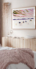 Dramatická zimní krajina v tlumených námořnických, růžových a fialových tónech, kde se smečka vlků pohybuje sněhem ke vzdáleným horským štítům během klidného západu slunce. Kvašová ilustrace Julie Lesouef v sobě spojuje sílu a poezii a dodává místnosti pocit klidu, divokosti a severské magie. Atmosférické nástěnné umění, které vybízí ke kontemplaci.