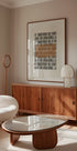 Pattern in Contrast od THE MIUUS STUDIO kombinuje těsné linie, mřížky a rytmické pruhy s měkkými, organickými tvary. V neutrálních odstínech béžové, černé a hnědé vytváří kompozice klidný, grafický výraz s jasnou hloubkou a kontrastem – ideální pro minimalistický, moderní dekor inspirovaný polovinou století.