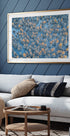 En stille vinterpoesi set fra oven: Sneklædte træer danner et grafisk mønster af blålige toner og frostklar luft. Det luftige droneperspektiv giver dybde og ro, mens lyset tegner subtile kontraster mellem skov og sne. En sofistikeret, abstrakt naturstudie af Mei Xu til moderne rum. Perfekt som roligt fokuspunkt i hjemmet.