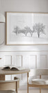 Et poetisk, højlyst vinterlandskab i sort-hvid: en ensom træsilhuet står i et hav af sne, mens en flok gæs glider lydløst hen over den hvide himmel. Minimalismen skaber ro og dybde, hvor kulde og stilhed mødes. White World af fotografen Mei Xu er en elegant hyldest til naturens simple drama. Perfekt til roligt, minimalistisk interiør.