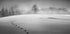 Winter scenery af Larry Deng APA fanger vinterens poetiske stilhed i sort/hvid. Et åbent, snedækket landskab brydes af fine fodspor, der fører mod en linje af rimklædte træer. Minimalistiske former og bløde kontraster skaber ro, dybde og eftertanke – en visuel pause midt i kuldens klare lys. Nordisk minimalisme forstærker motivets ro.