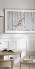 From White od HAN dong hee zachycuje světélkující březový háj ve vysokém tónu: štíhlé bílé kmeny rytmicky stoupající měkkou mlhou s jemnými skvrnami podzimního zlata zavěšenými ve vzduchu. Minimální, ale hřejivá, evokuje klid, prostor a tichý pohyb – elegantní, moderní kývnutí na severské lesní světlo. Ideální pro klidné, moderní prostory.