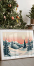 Poetická zimní scéna, kde se jedle tyčí v zasněžené krajině, zatímco jemné sněhové vločky tiše padají čistým, chladným vzduchem. Tlumené nebe a jemné kontury vytvářejí poklidnou vánoční atmosféru – ideální pro vnesení klidu, přítomnosti a severské pohody do domova. Kompozice vybízí k rozjímání a zimnímu klidu v každé místnosti.