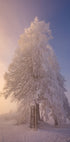 V krajině zalité zlatým ranním světlem se odehrává tiché zimní ráno. Na trávě a větvích se třpytí jinovatka, zatímco proti jasné obloze se ostře vyjímá silueta osamělého stromu. Sníh ztlumí každou stopu a vzduch se chvěje chladem a klidem. Fotografii vytvořila Judith Kuhn. Sluneční paprsky prorážejí rýmující se větve a dodávají motivu poetický klid.